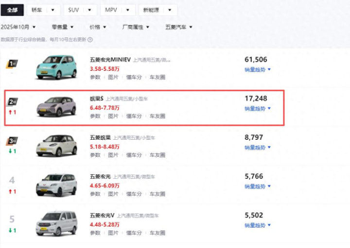 问:“谁是老百姓消费者心中的良心品牌”?我想大多数人会想到“五菱”。为什么?就因为人民需要什么,五菱就造什么的这句话。当然了,从产品表现上来看,五菱旗下的很多车型,也确实让老百姓有了更多的选择。而在这其中,五菱缤果家族的全新车型“五菱缤果S”,这台车上市之后,立刻得到了很多消费者的关注。与此同时,从近期公布的10月份销量上可以看到,这台五菱缤果S居然交付了17248台新车,成为了小型纯电代步车的新选择。
